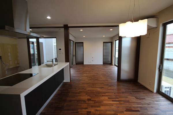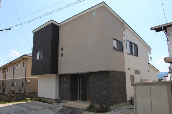 施工事例 福島市 M 様 所在地:福島市デザインコンセプト:スタイリッシュモダン 施主様のこだわりを貫いた外観。塗り壁にサイディング、モルタルに塗装、そして天然の石張りまで!こだわった素材を色合いや位置をパースで施主様と入念に確認しながら造り上げました。内部もこだわりのオリジナルのアイランドキッチン!2階には楽器の演奏を楽しむための防音室も設けました。