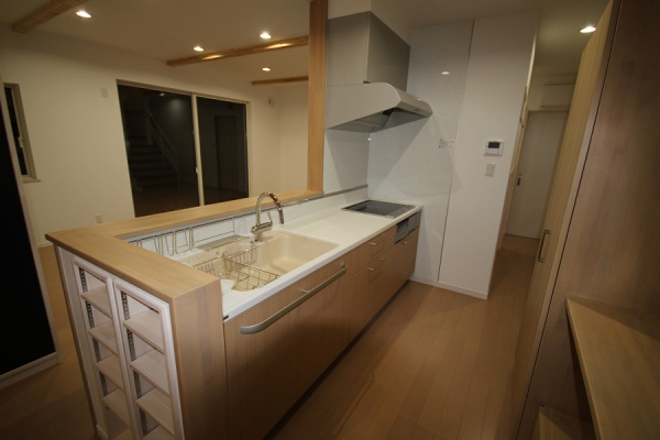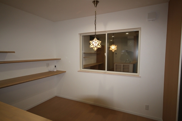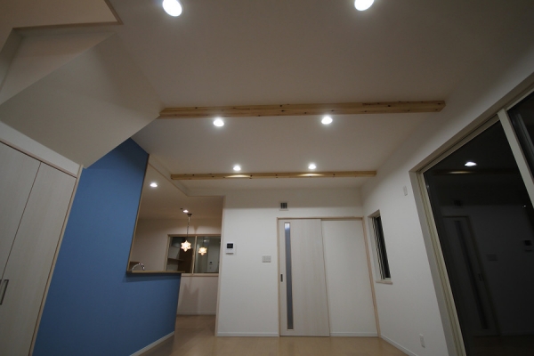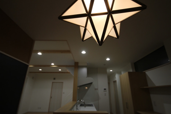 施工事例 福島市 B 様 所在地:福島市デザインコンセプト:シンプルモダン お気に入りのペンダントライトや大胆なカラークロスを取り入れ、毎日の住生活がハッピーに過ごせるコーディネートに仕上げました。子供達の帰宅をリビングに設けたオープン階段が出迎え、家事をしながらでも、家族の存在を感じることができます。