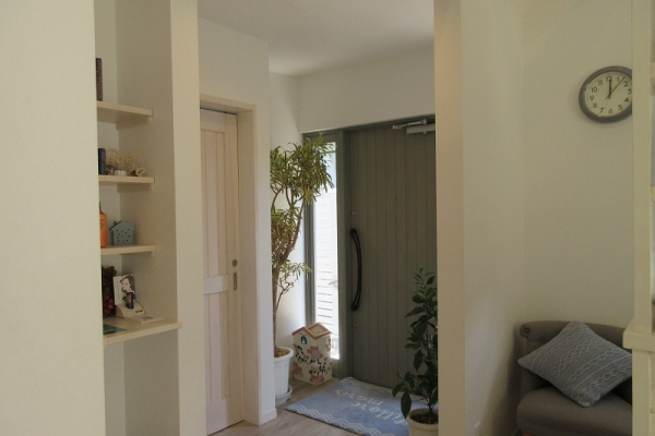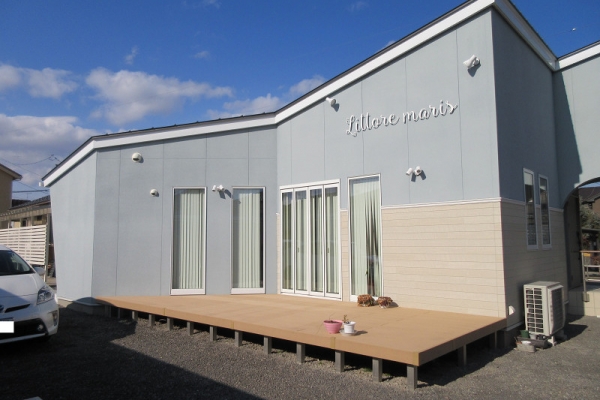 地中海沿岸部をイメージした外観デザインで内装は白を基調とした清潔感のある明るい空間に仕上がっています。照明や収納、棚など細部にまでこだわって造り上げました。でも実はこの建物、新築ではなくリノベーション!元の建物はよくある平屋の貸家でした(゚д゚)!